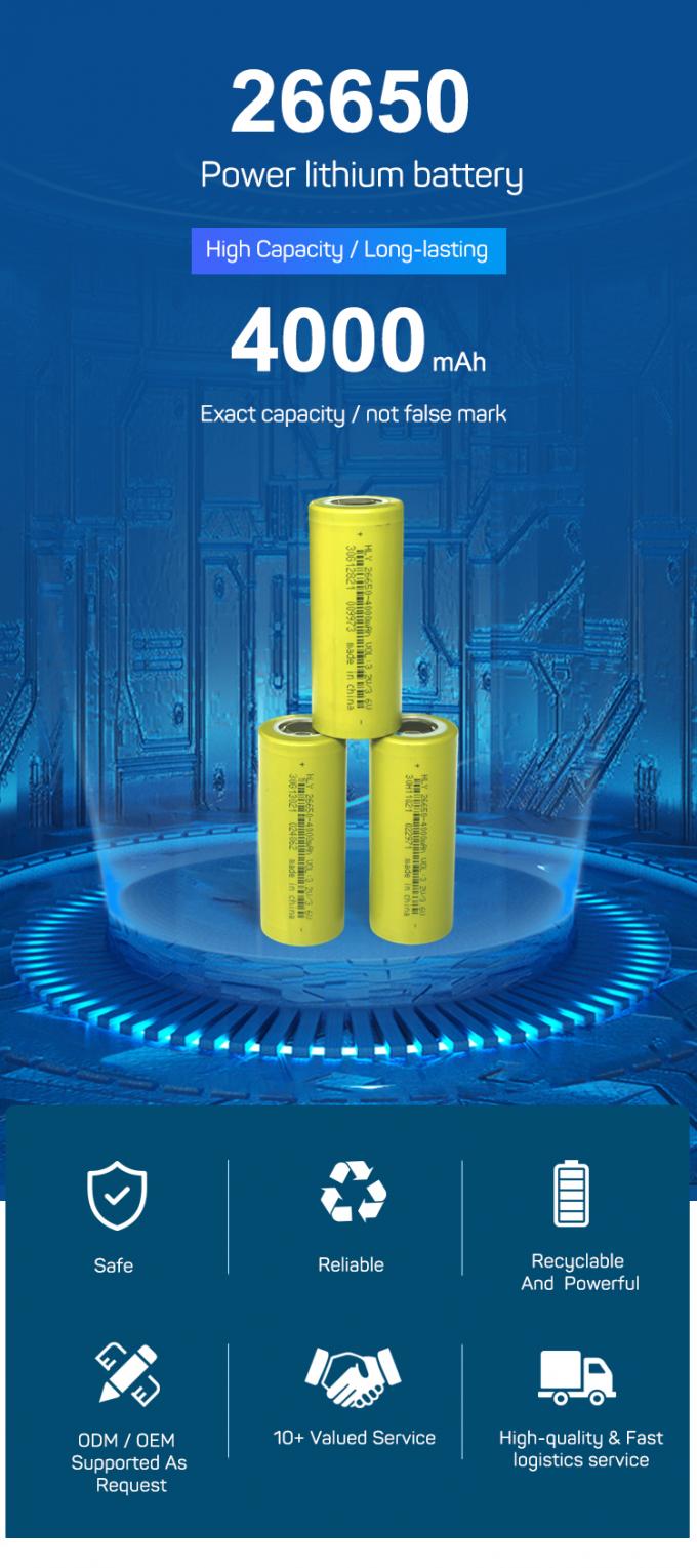 | Model Number: | 26650 4000mAh Rechargeable Li-ion |
